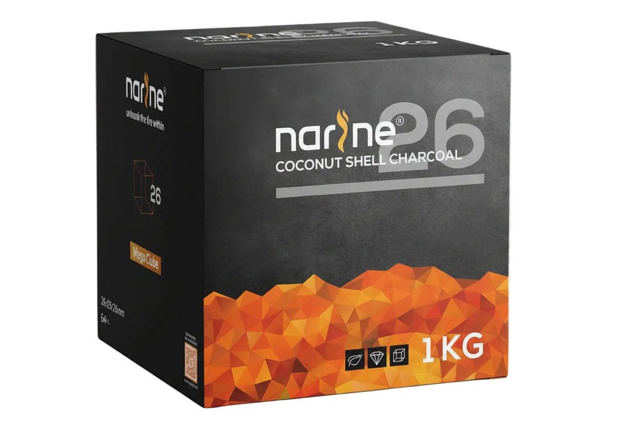 Narine 26mm Natural Coconut Charcoal is the perfect choice for shisha enthusiasts and wholesale buyers seeking a clean, long-lasting burn.